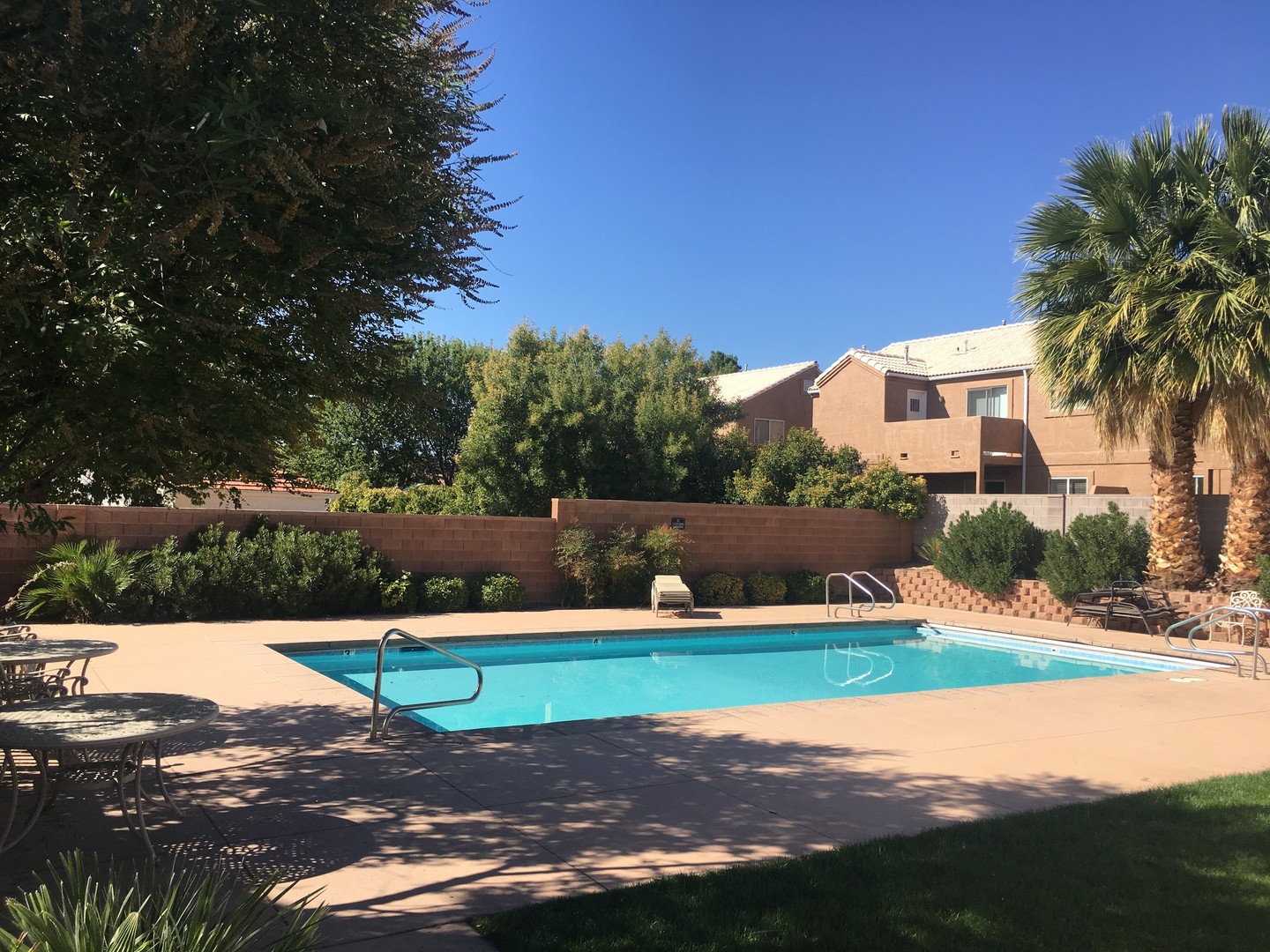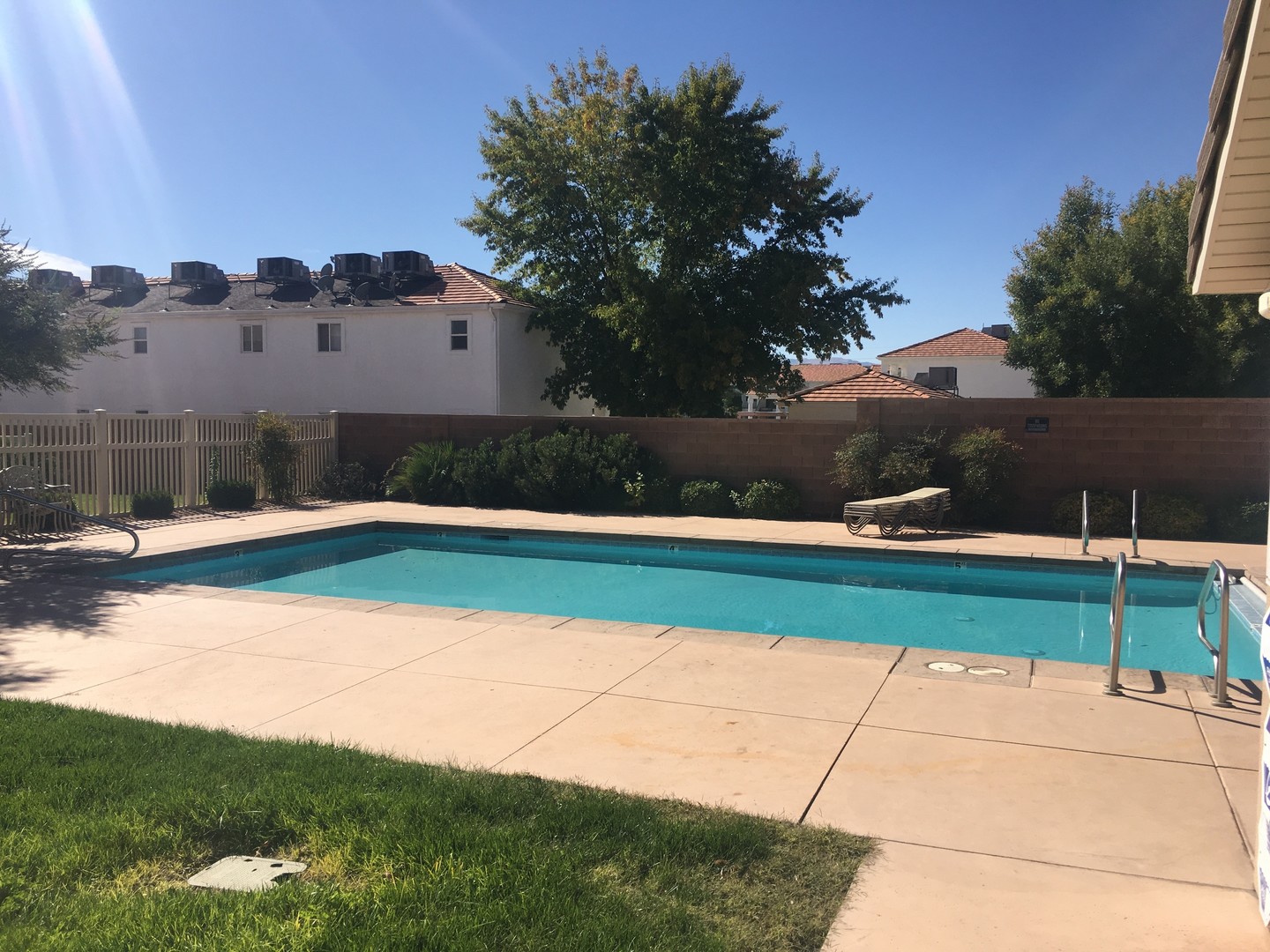 Community swimming pool as well as large grass common area just outside the back patio.