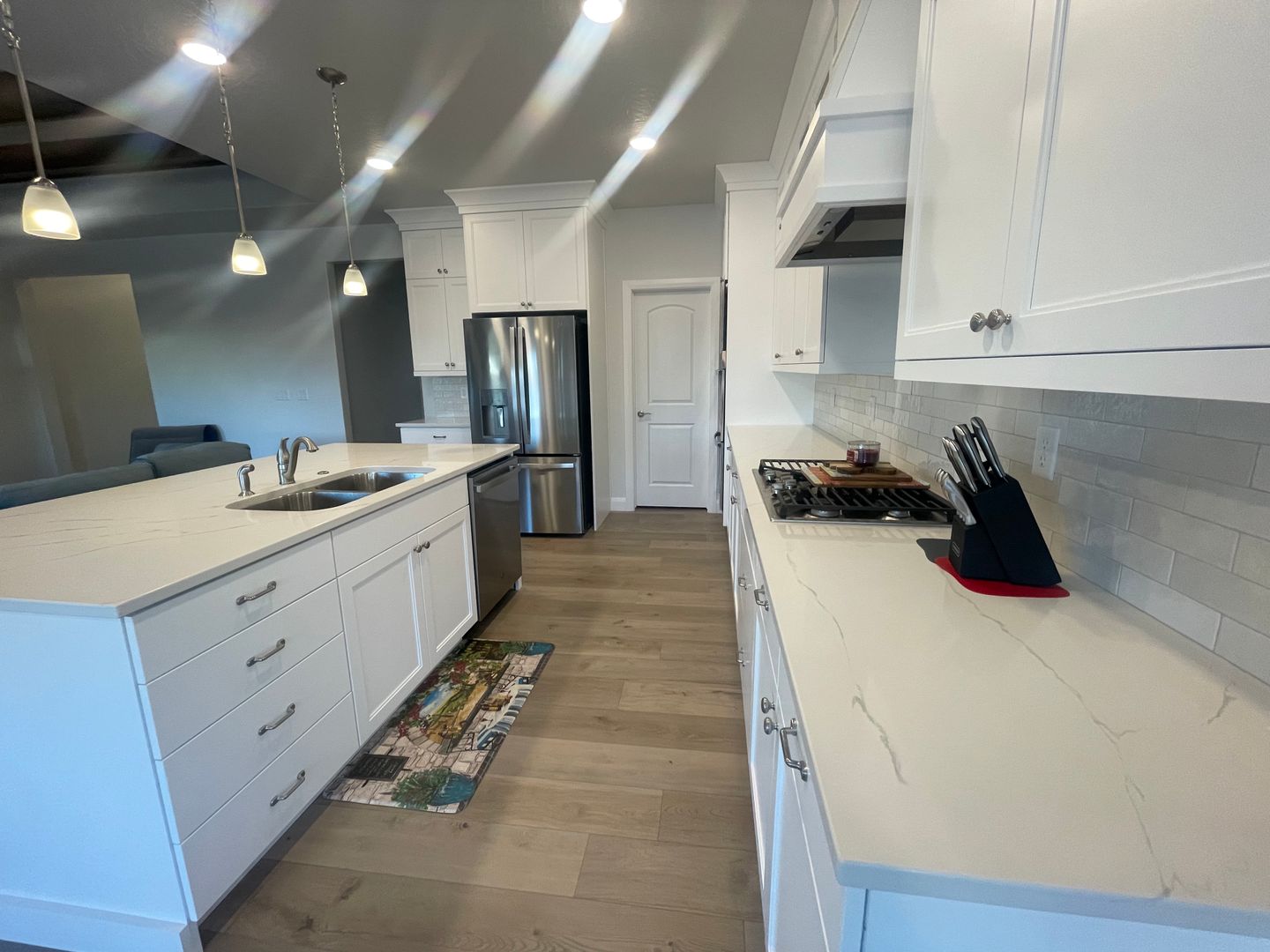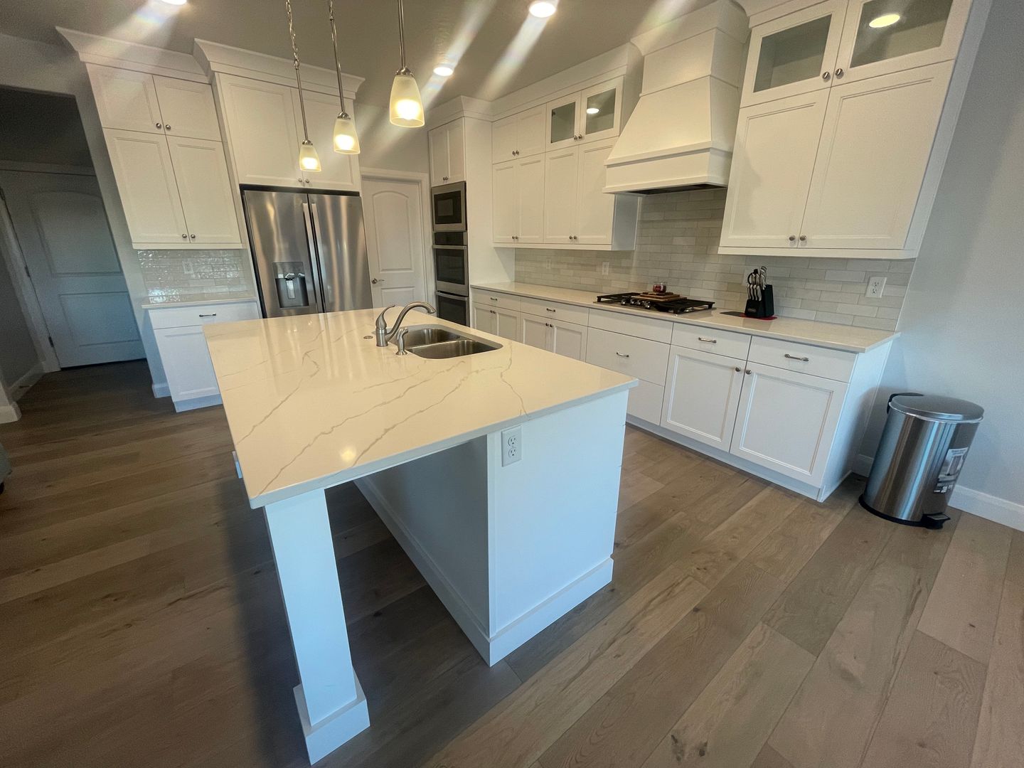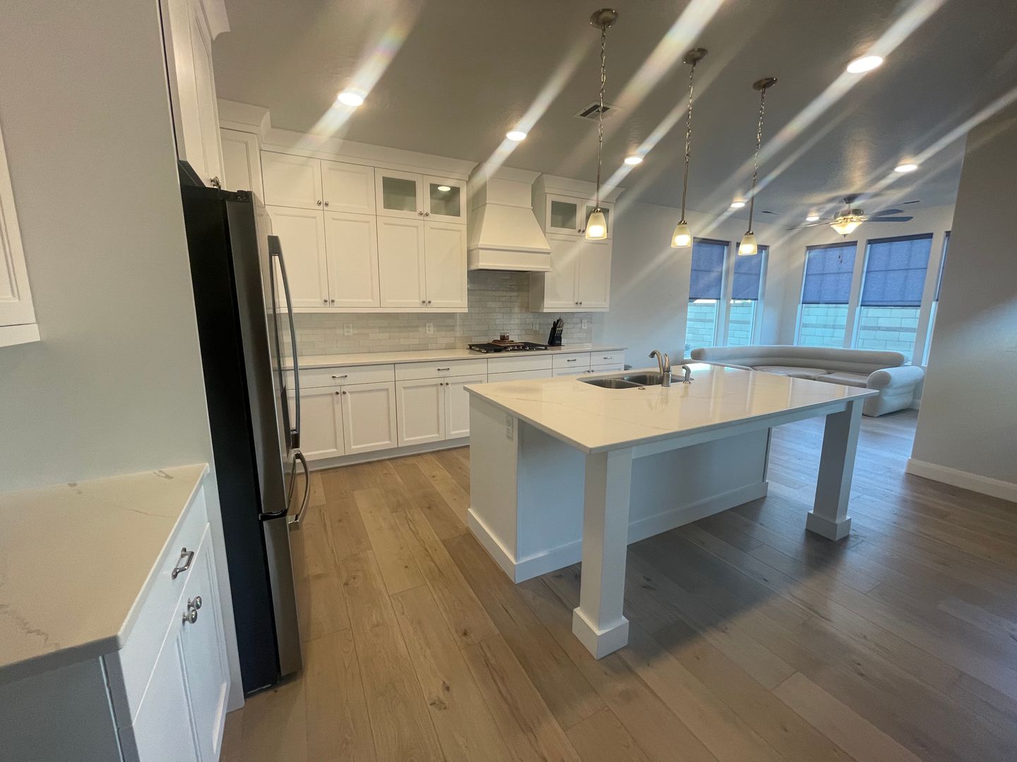 Home features 3 bedrooms, 2.5 bathrooms. Open concept. Washer and dryer included with cabinets that go all the way to the ceiling.
