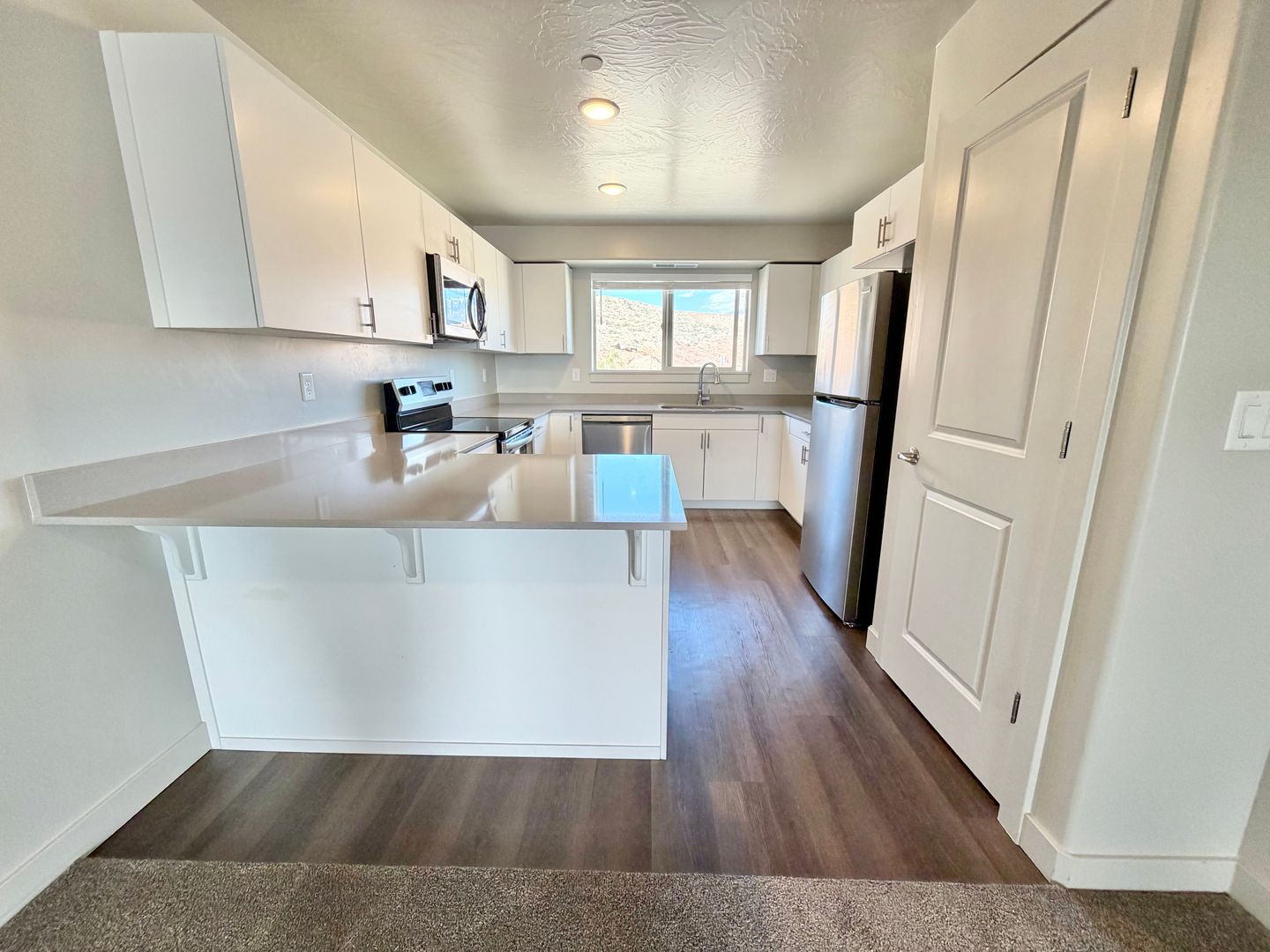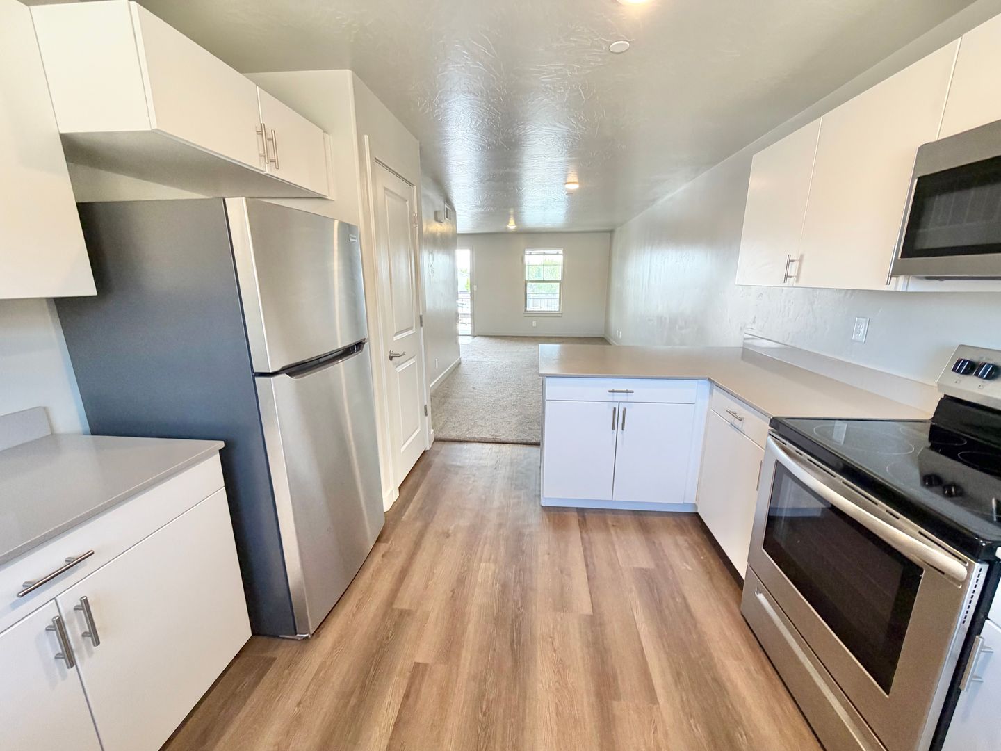 The kitchen features abundant cabinet space, making it perfect for cooking, storage, and everyday convenience. The open layout creates a welcoming atmosphere for relaxing or entertaining.